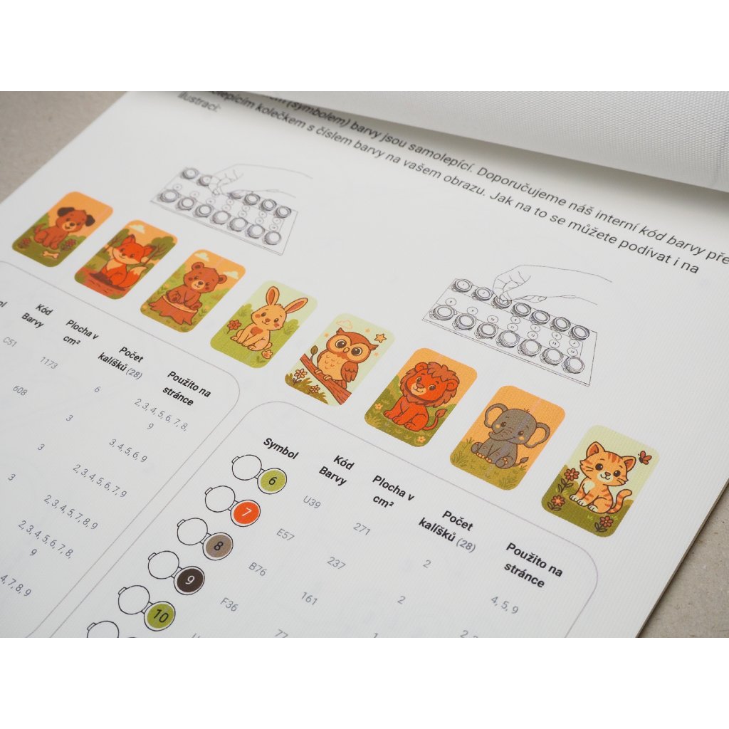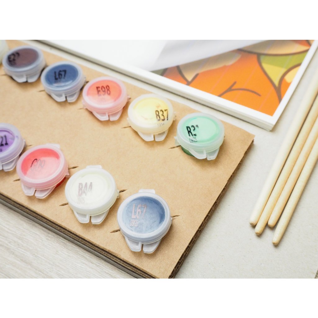 Tartalmaz 8 azonos témájú mintát, akrilfestékeket, ecseteket, festéktartót merev kartonlapra rögzítve és kapcsot, amely mindent egyben tart. Csak nyisd ki, fogd meg az ecsetet, és kezdj alkotni!