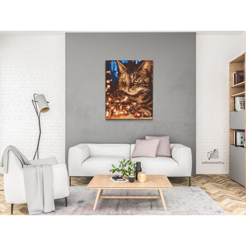Gyémántszemes kirakó - Macska fényfüzérrel