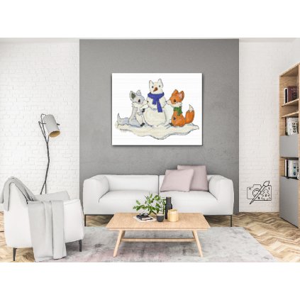 Gyémántszemes festmény - Rókák és hóember
