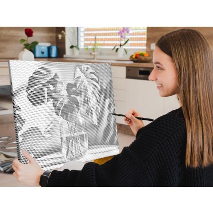Készíts dizájner festményt pöttyökkel! Válassz egy filctollat a kedvenc színedben, és pöttyözz kedvedre az előre nyomtatott vászonra! Ha kerettel rendeled meg a képedet, már fel is akaszthatod a falra, ha elkészült. Az biztos, hogy lenyűgöző művészi alkotást kapsz a végén, akkor is, ha soha nem festettél még. Minden egyes pöttyel egy lépéssel közelebb vagy az egyedi alkotásodhoz.