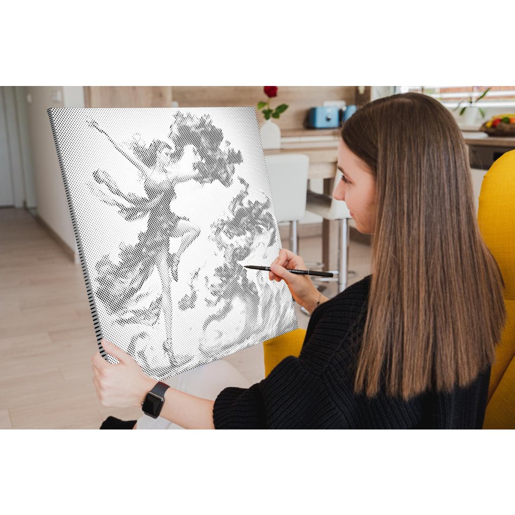 Készíts dizájner festményt pöttyökkel! Válassz egy filctollat a kedvenc színedben, és pöttyözz kedvedre az előre nyomtatott vászonra! Ha kerettel rendeled meg a képedet, már fel is akaszthatod a falra, ha elkészült. Az biztos, hogy lenyűgöző művészi alkotást kapsz a végén, akkor is, ha soha nem festettél még. Minden egyes pöttyel egy lépéssel közelebb vagy az egyedi alkotásodhoz.