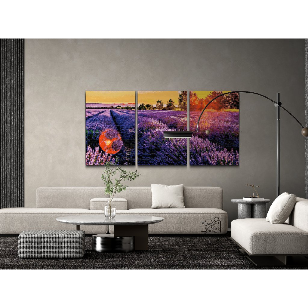 Gyémántszemes festmény - Levendulamező (3 db-os készlet)